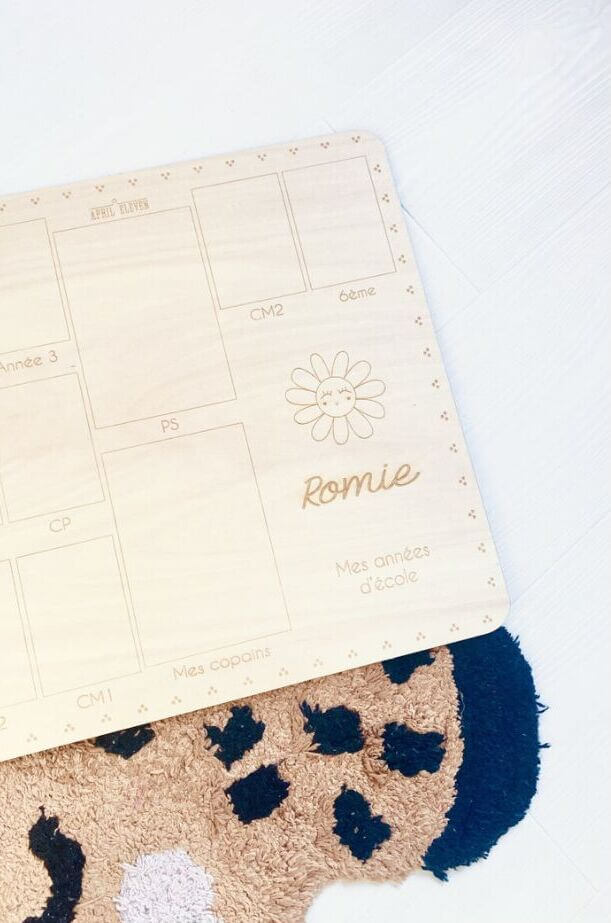 Our wooden class photo holder is customizable with your child's first name. Your memory wall will become a dedicated space where each class photo can find its place. Allowing you to follow your child's growth year after year.