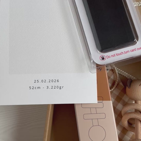 Il permet de réaliser facilement une empreinte de pied ou de main de votre enfant, accompagnée d’une carte souvenir personnalisée avec :