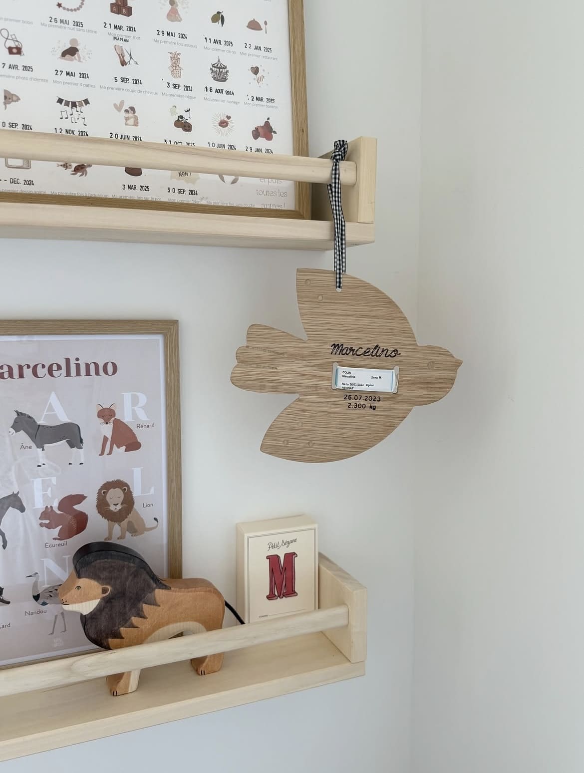 - un support pour conserver le bracelet de naissance personnalisé avec prénom, date et poids naissance.