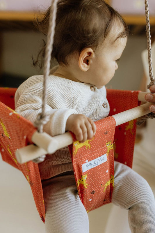 Balançoire bébé intérieur | imprimé léopard orange en tissu