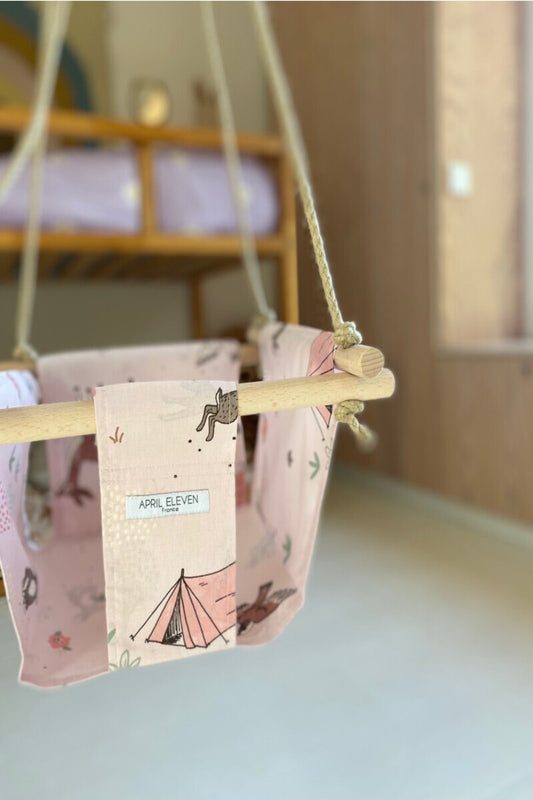 Balançoire bébé intérieur | imprimé rose forêt en tissu